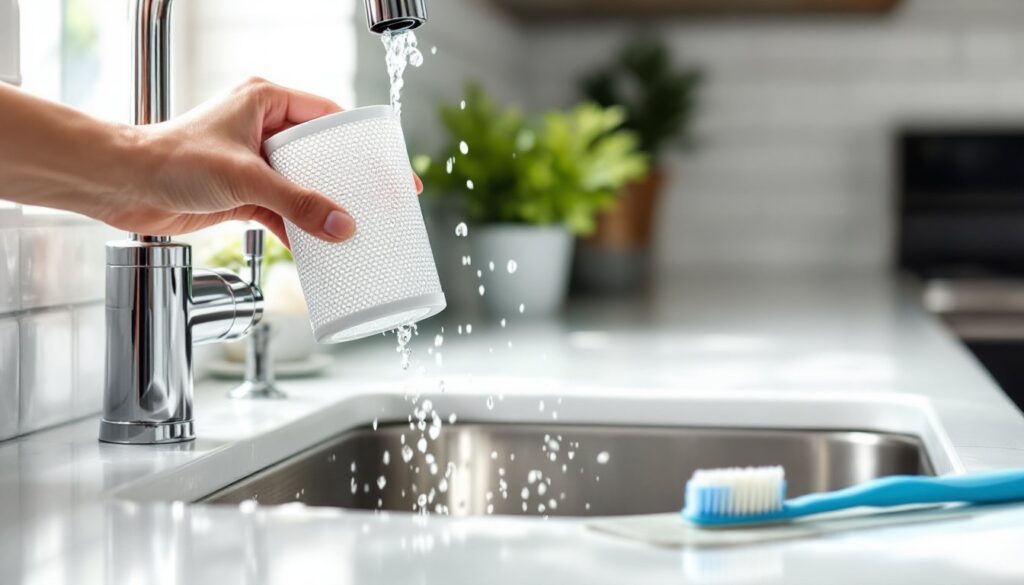 The filter sits at the bottom of the tub, usually under the lower spray arm. Twist or lift to remove it (consult the owner’s manual if unclear, designs vary by manufacturer). Rinse under warm running water, then scrub with a soft-bristle brush to dislodge trapped food, grease, and debris. A drop of dish soap helps cut heavy buildup. Rinse thoroughly and set aside.